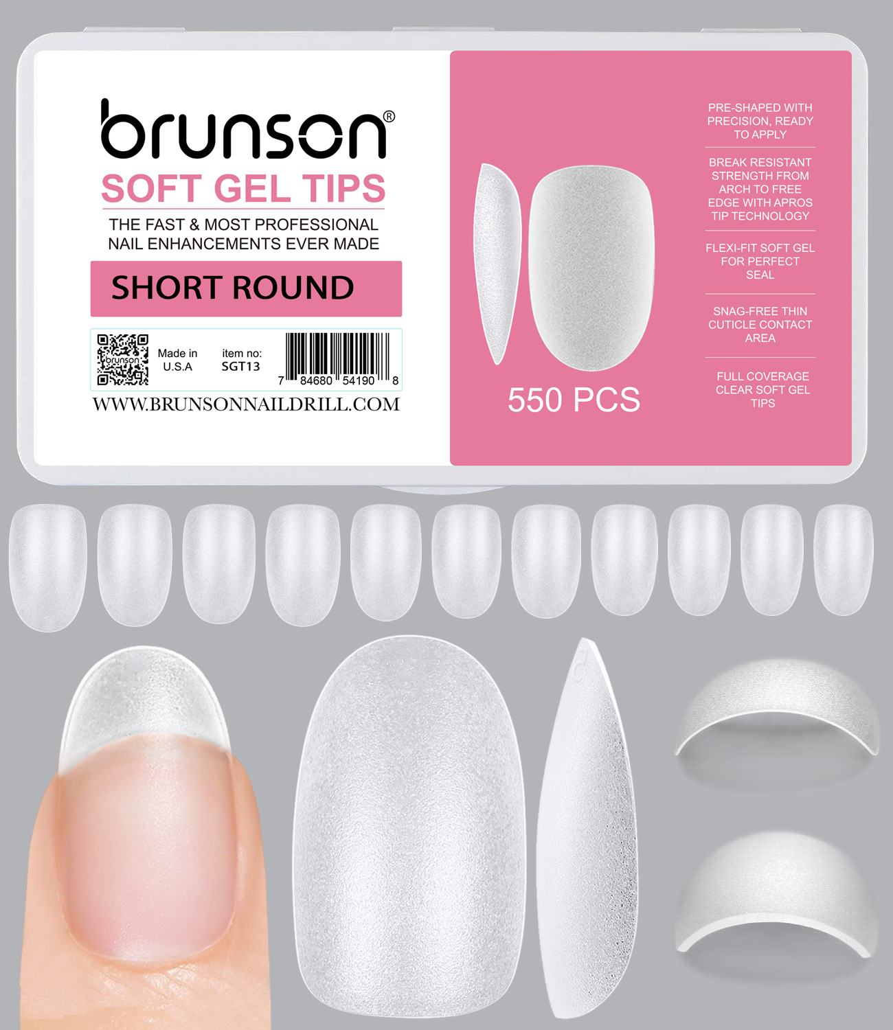 Brunson Soft Gel Nail Tips Short-Round Shaped C-Curved Clear Soft Gel Tips – SGT13