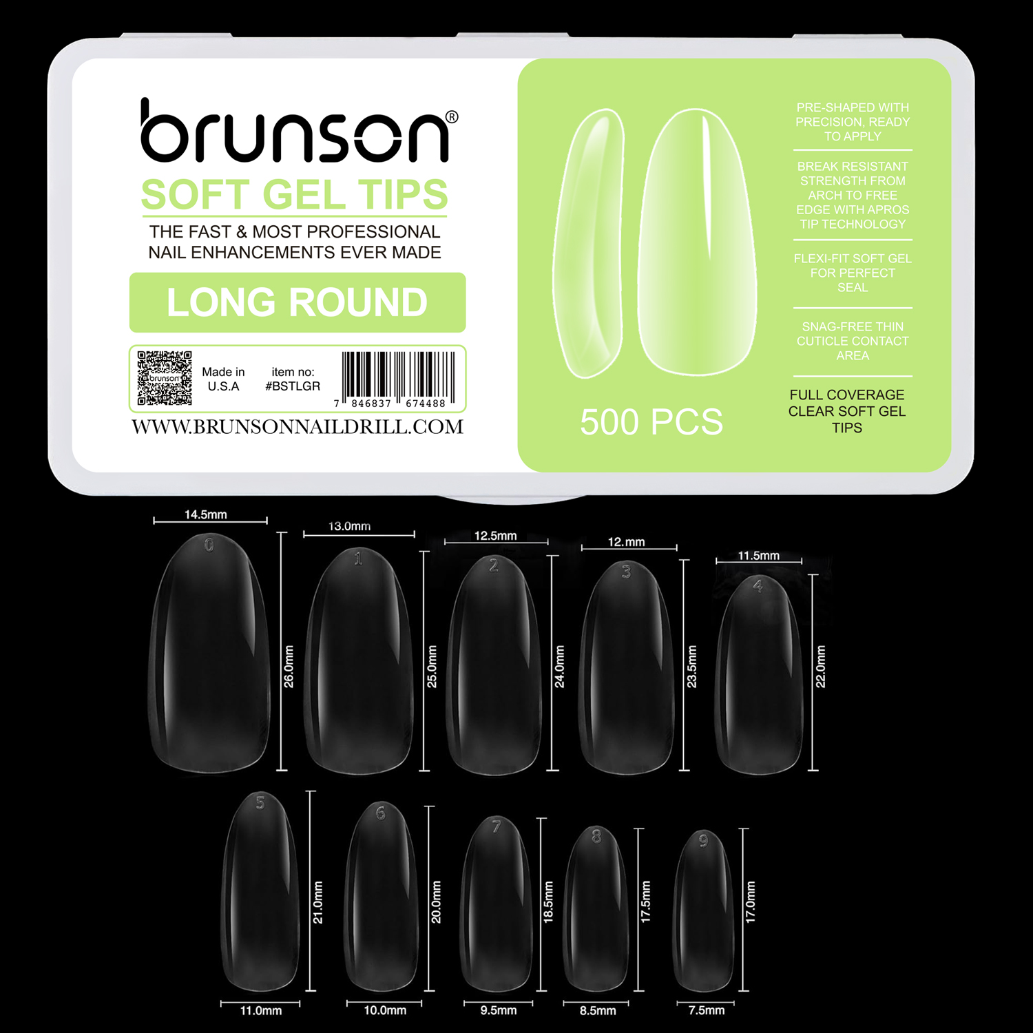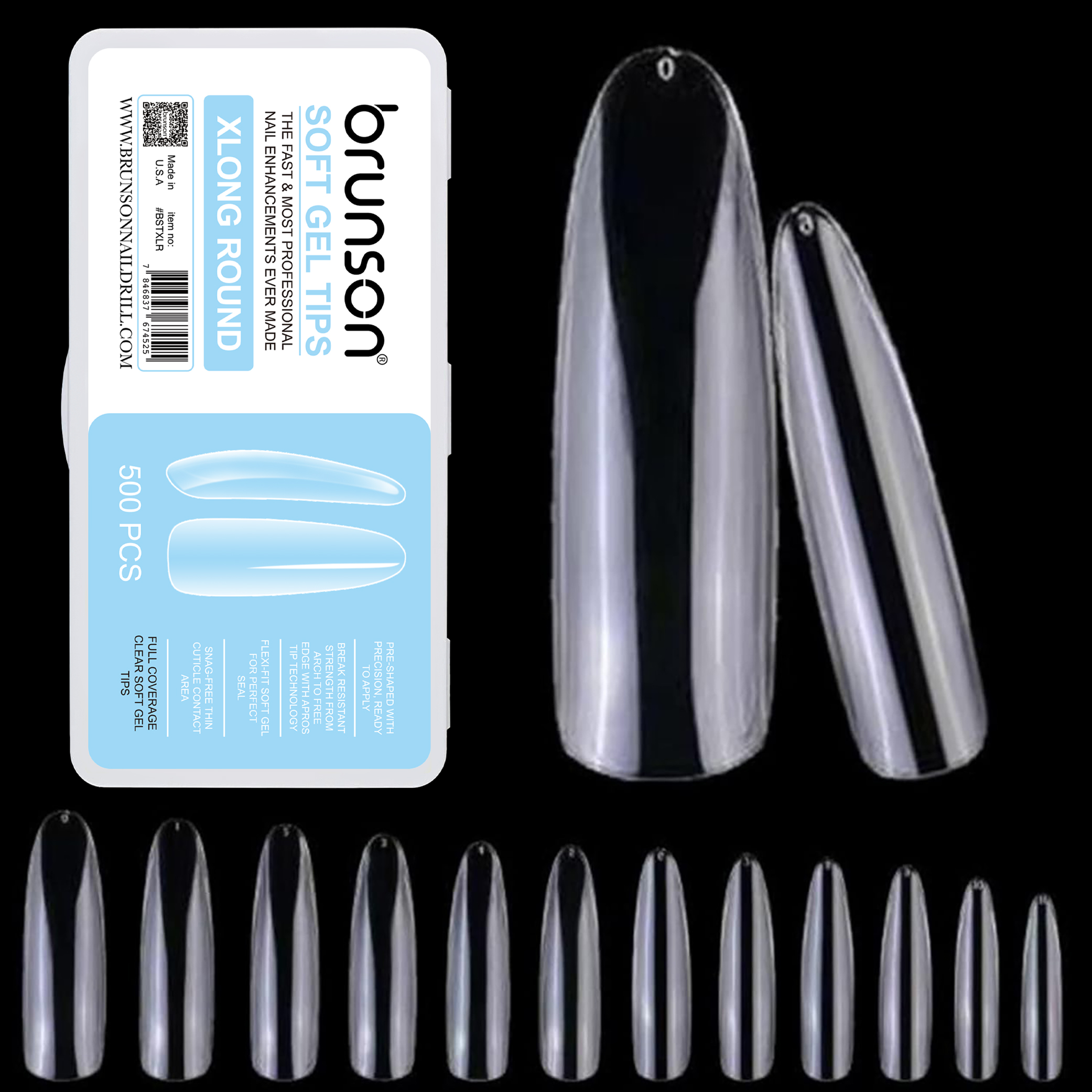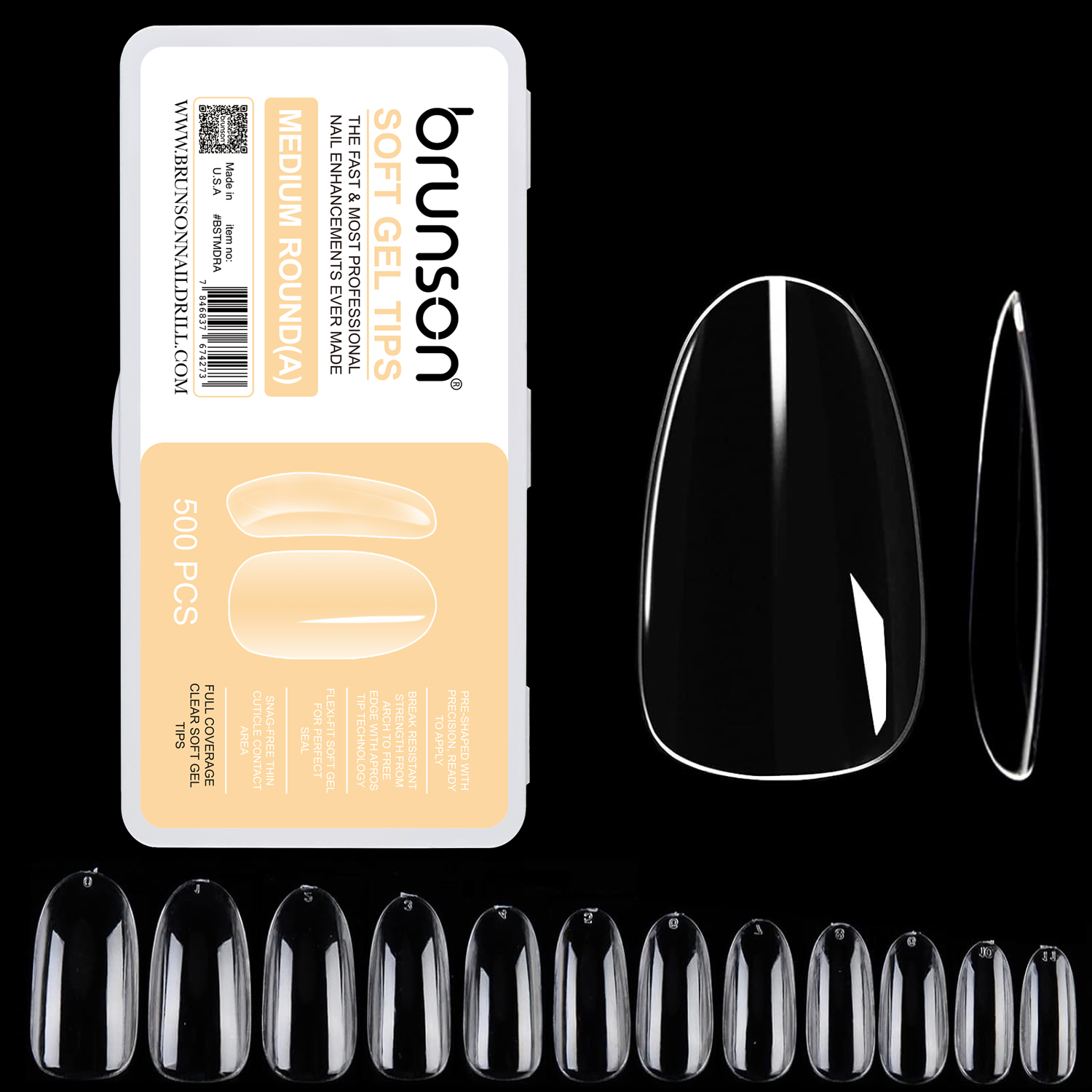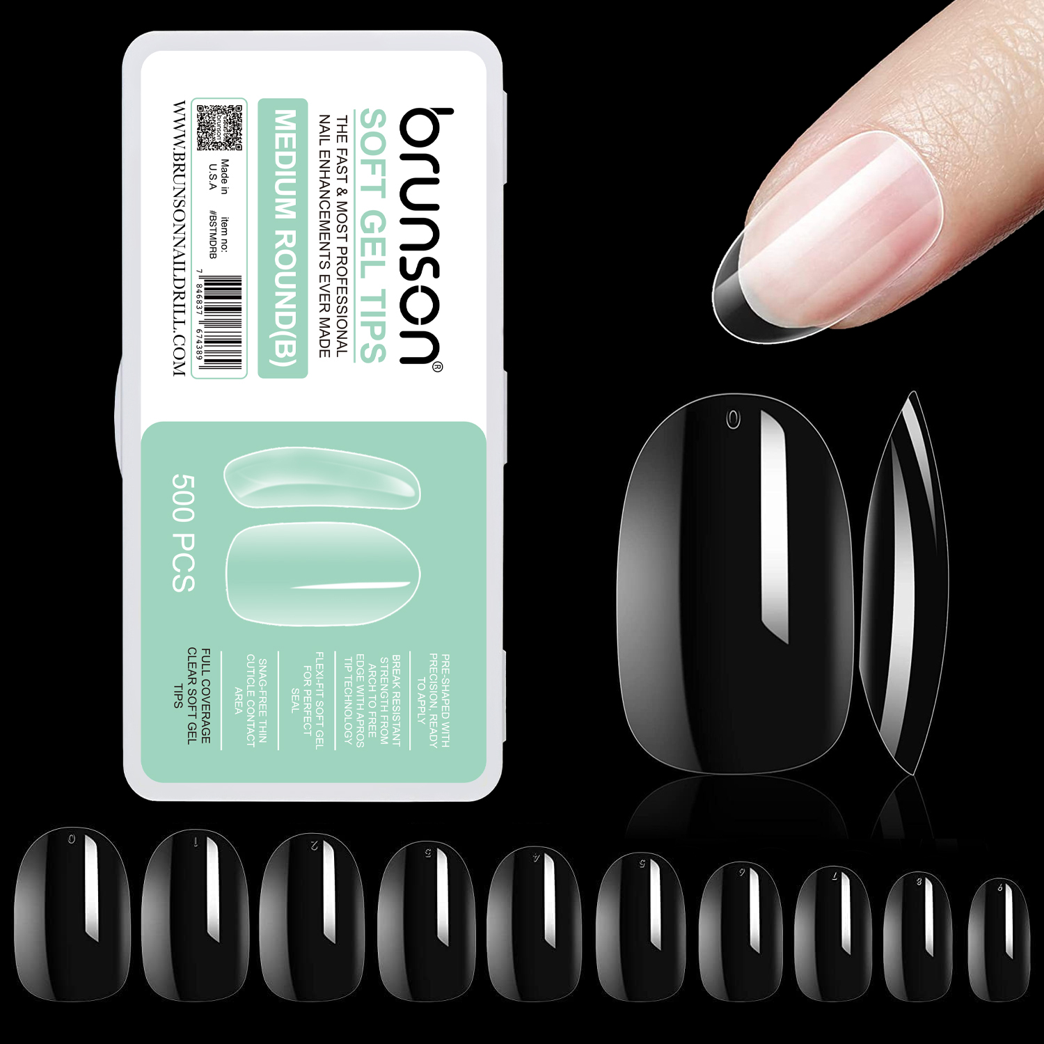 Brunson Soft Gel Nail Tips Medium-Round Shaped Long Length Full Coverage Clear Soft Gel Tips – BSTMDRA