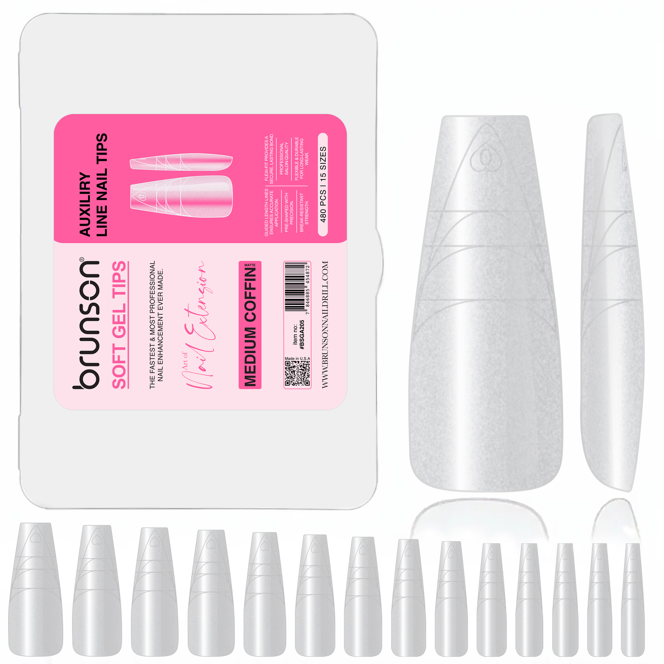 Brunson Almond Shape Soft Gel Nail Tips, Medium Almond Auxiliary Line Nail Tips