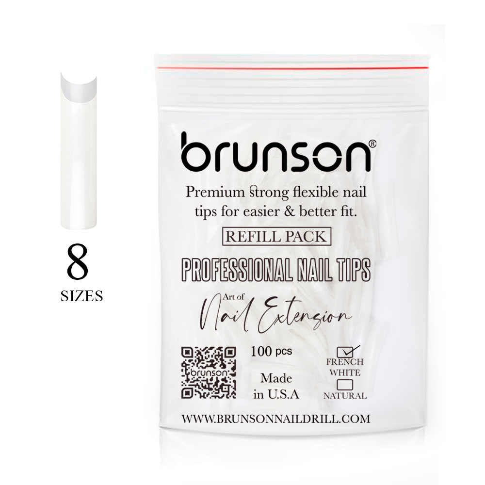 Using Brunson Classic French Nail Tips Refill Pack is easy and can be done by professional nail technicians. Here are the steps to follow: