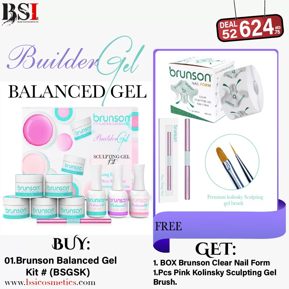 Deal 52 | Buy Brunson Balanced Gel Kit and Get 1 Box Brunson Clear Nail Form, Pink Kolinsky Sculpting Gel Brush, and Brunson Bag Free!