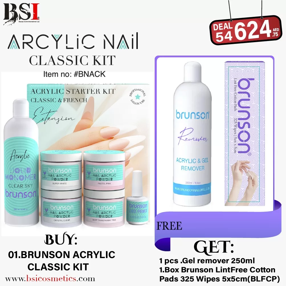 Deal 54 | Buy Acrylic Classic Kit and Get 1 Gel Remover and 1Box Lint free Cotton Pads Free!