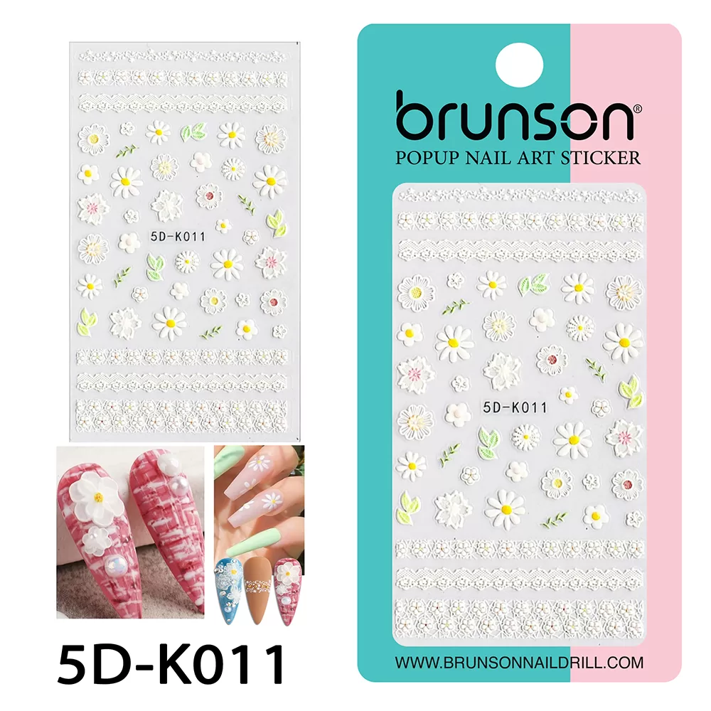 Brunson Offers Best 5D Nail Art Stickers for your Nails. 5D nail art stickers have revolutionized the world of nail design, offering a wide range of creative possibilities for both nail artists and nail technicians. These innovative Nail stickers have gained popularity in the nail art club, attracting the attention of nail enthusiasts and professionals alike. Nail artists and Nail technicians can now explore their imagination and showcase their skills through intricate and eye-catching Nail designs using these Nail stickers. From elegant floral patterns to bold geometric shapes, the possibilities are endless with these 5-D nail art stickers. This modern nail design has truly transformed the industry, allowing individuals to express their personal style and creativity in an accessible and convenient way.