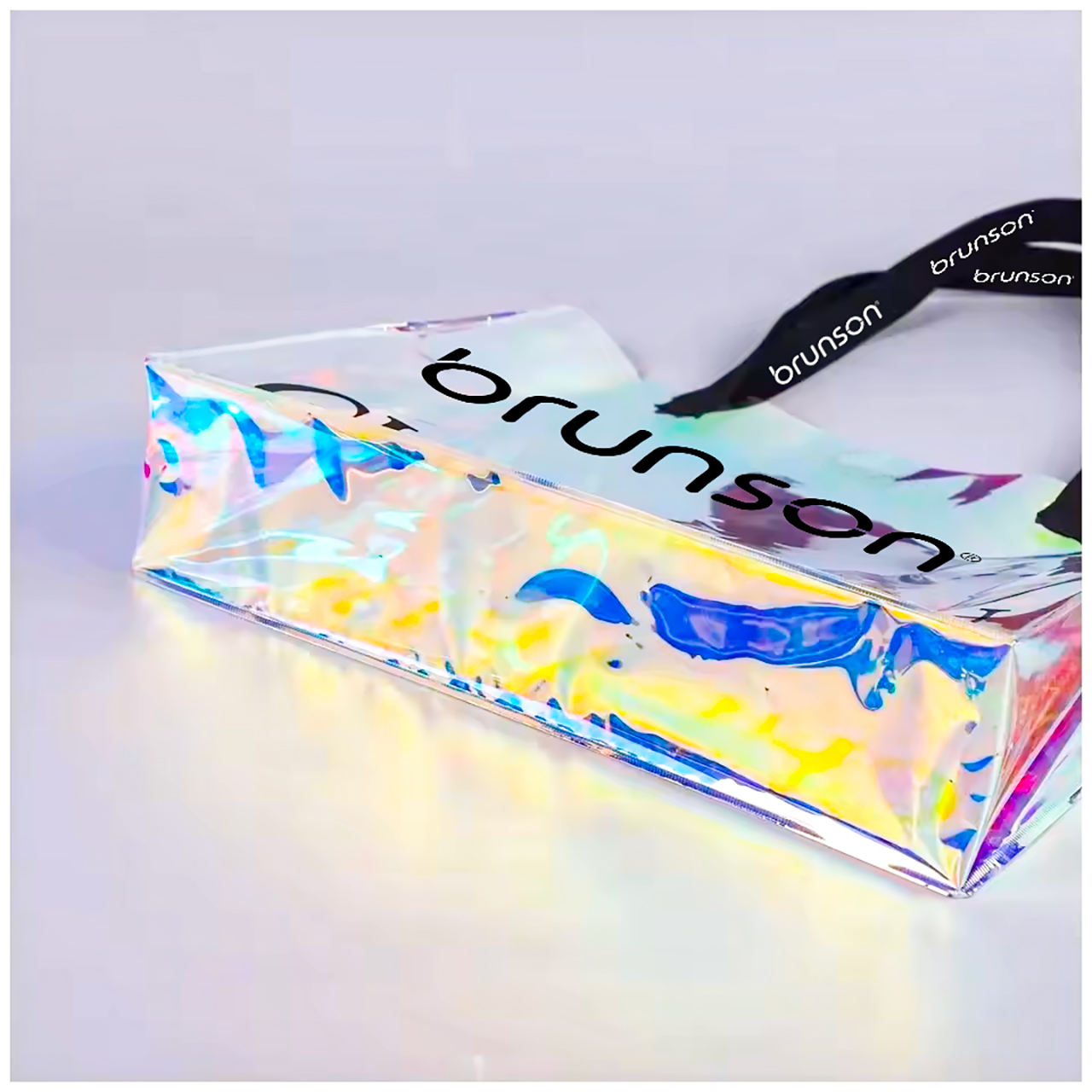 Prepare to redefine your everyday carryall with the Holographic Clear Tote Bag. This innovative design combines the practicality of a clear tote with the mesmerizing allure of a holographic finish. The transparent material allows you to effortlessly locate your essentials at a glance, while the iridescent surface shimmers and shifts colors with every movement, transforming your holographic bag into a captivating accessory.