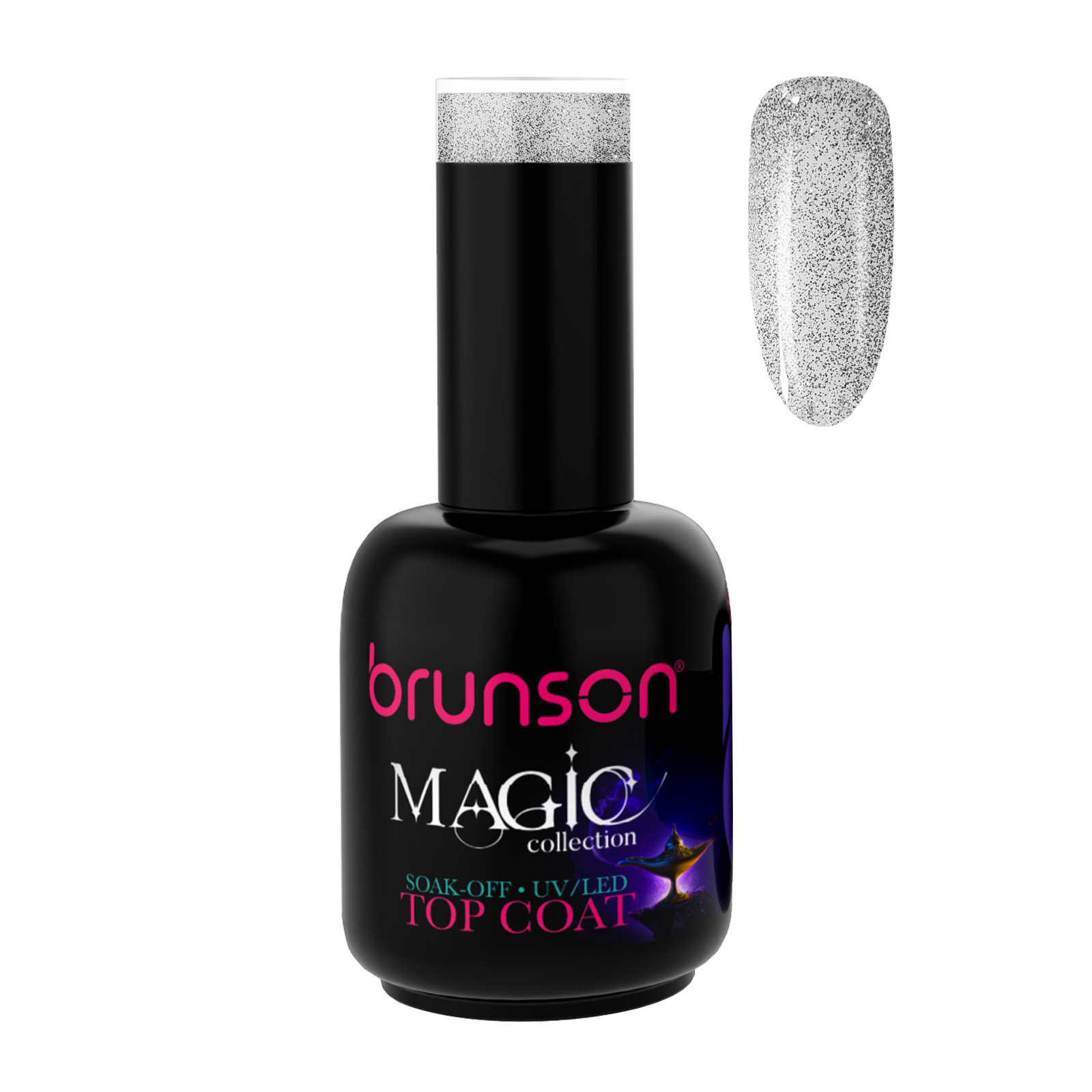 - Finish your manicure with a layer of glitter Magic Top Coat, infusing your nails with mesmerizing glitter.