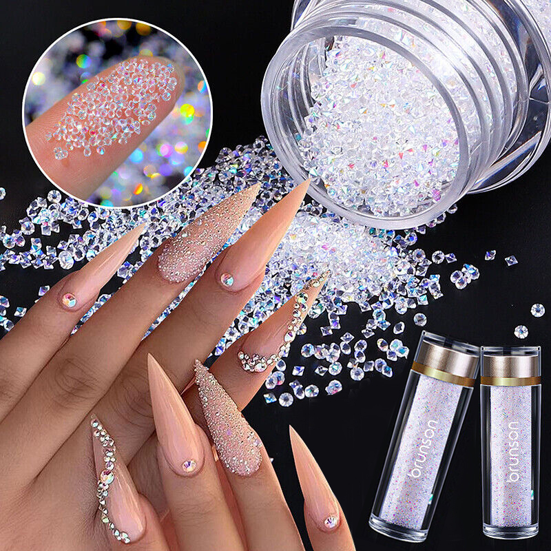 Brunson Nail Art Mini Micro Diamond Glass Rhinestones are designed to bring refined brilliance and a crystal-like shimmer to nail art. These premium mini crystal rhinestones mimic the luxurious sparkle of crystal sequins, delivering a high-quality finish that enhances manicures with elegance and durability. Encased in a practical container for organized storage, they are ideal for both professional nail artists and DIY enthusiasts seeking a flawless, long-lasting look.