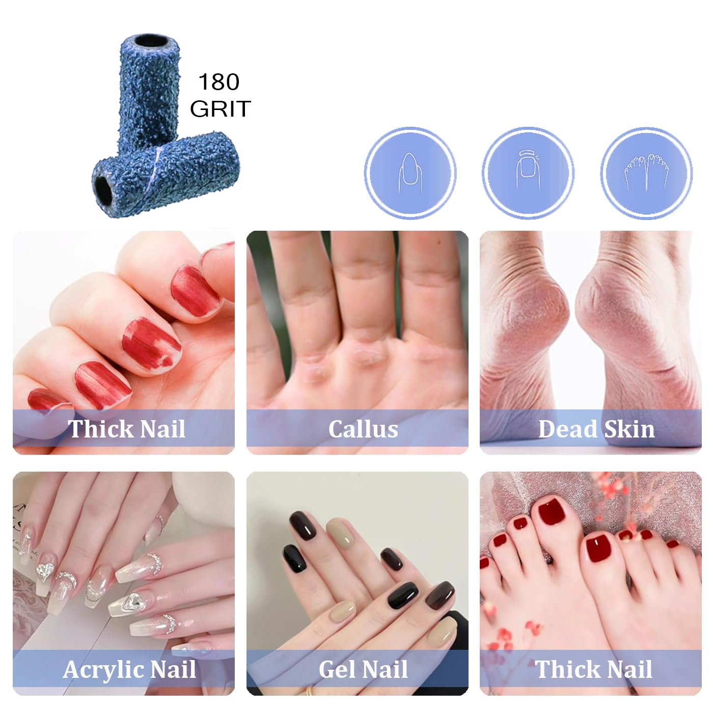 - Consider Grit: Mini Sanding Bands 180 grit sanding bit is relatively fine and is often used for smoothing and refining the nail surface, especially after shaping and filing. It helps in achieving a polished and smooth finish on the nails.