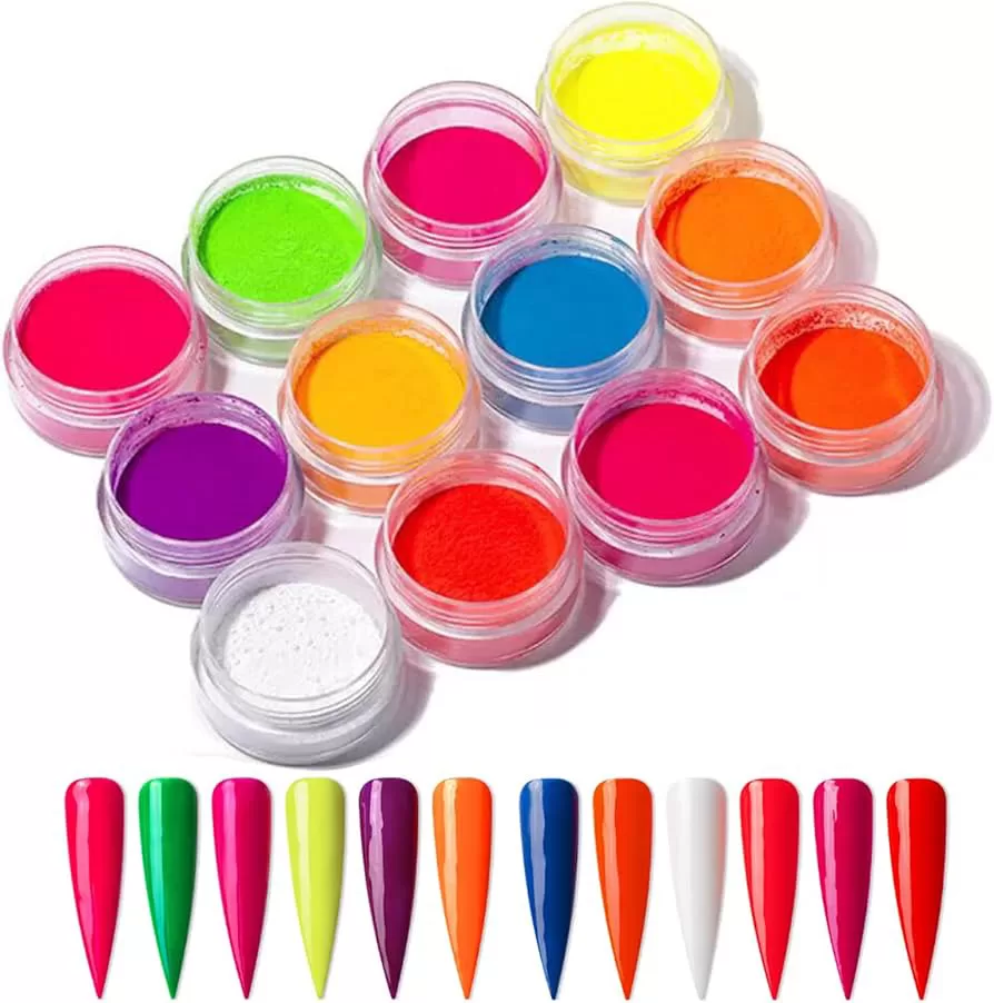 Nail Art Magic Powder – Fluorescent Neon Colors (12 Pcs)