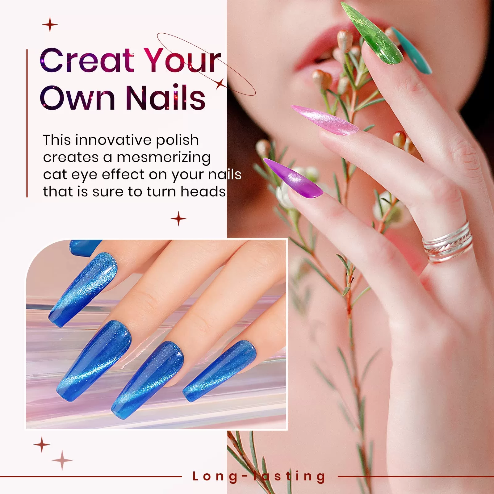 Step into the spotlight with nails that shimmer and captivate. This cat eye gel polish offers full, high-brightness color that effortlessly catches the eye. Whether you’re attending a special event, hitting the town, or simply enjoying the sun, your nails will radiate brilliance and draw admiration.