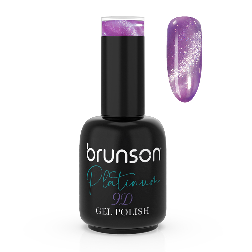 Brunson’s Platinum 9D Cat Eye Magnetic Soak Off UV Gel Polish BSM508 is creates a “cat eye” effect on the nails. It uses magnetic particles in the polish that are attracted to a magnet included with the polish. When the polish is applied, and the magnet moves close to the nail, it creates a swirling, 3D effect that resembles the eyes of a cat. This nail polish is usually applied as a top coat over regular nail polish and typically requires UV or LED light to cure. The final look is glossy and shimmery. The effect is temporary and last on nails until the polish is removed.