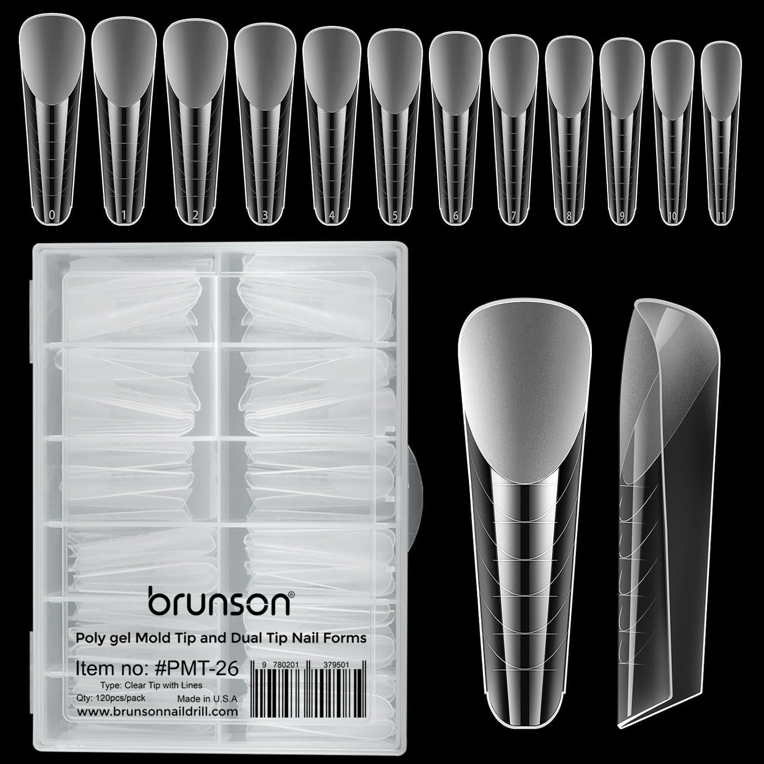 Brunson Polygel Mold Tip PMT-26 | Reusable Dual Tip Nail Forms