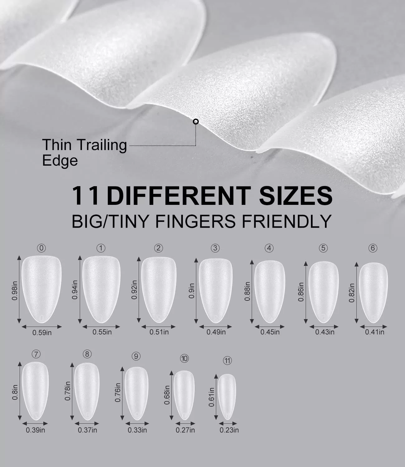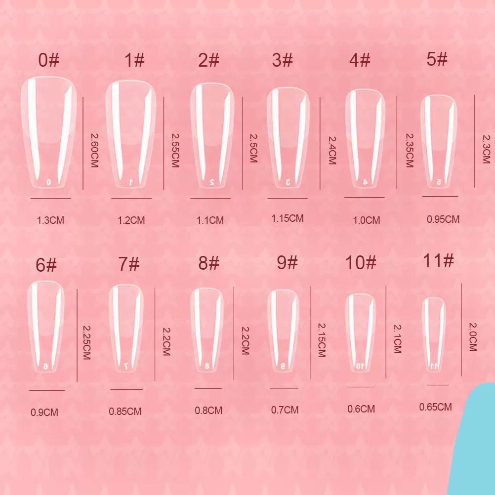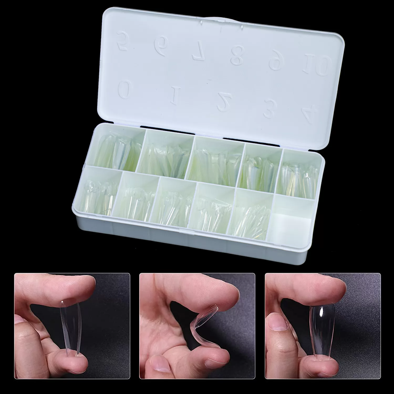 Full Coverage Clear Soft Gel Tips: Enjoy the strength and flawless coverage of full-coverage tips with the flexibility and comfort of soft gel for beautiful, long-lasting extensions.