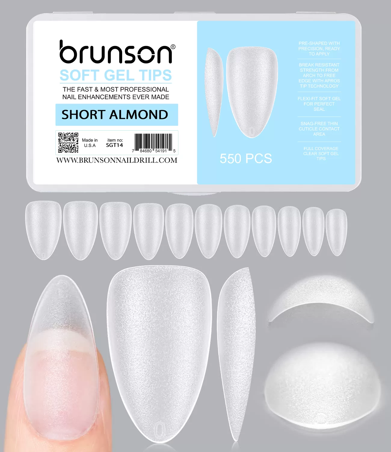 Brunson Short Almond Shape Soft Gel Nail Tips – C-Curved Clear Soft Gel Tips