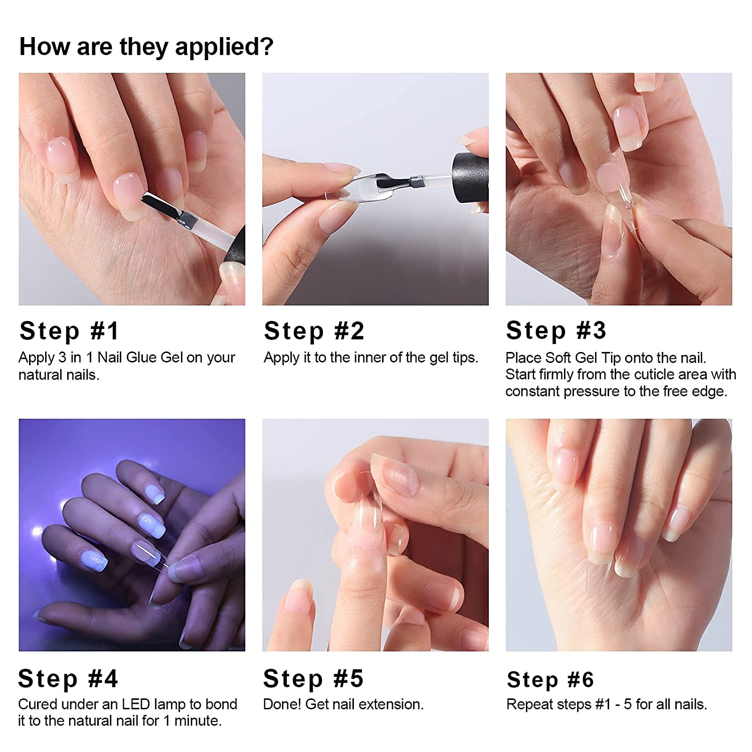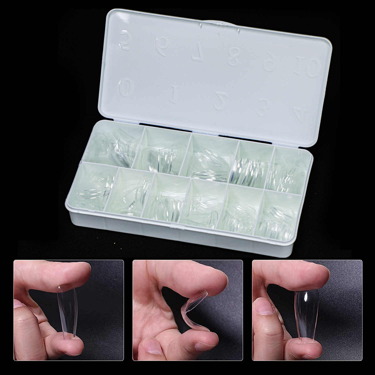 Our Clear Soft Gel Nail Tips come in a variety of sizes to fit any nail bed, and can easily apply using traditional nail glue or a UV lamp. They are also easy to remove and can reuse for multiple times.