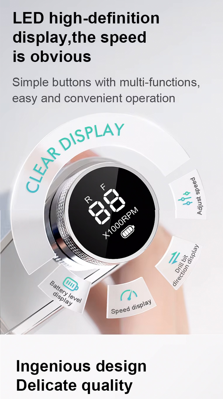 - Direction Control: Double-click the button to switch the drill bit’s rotation between forward and reverse.